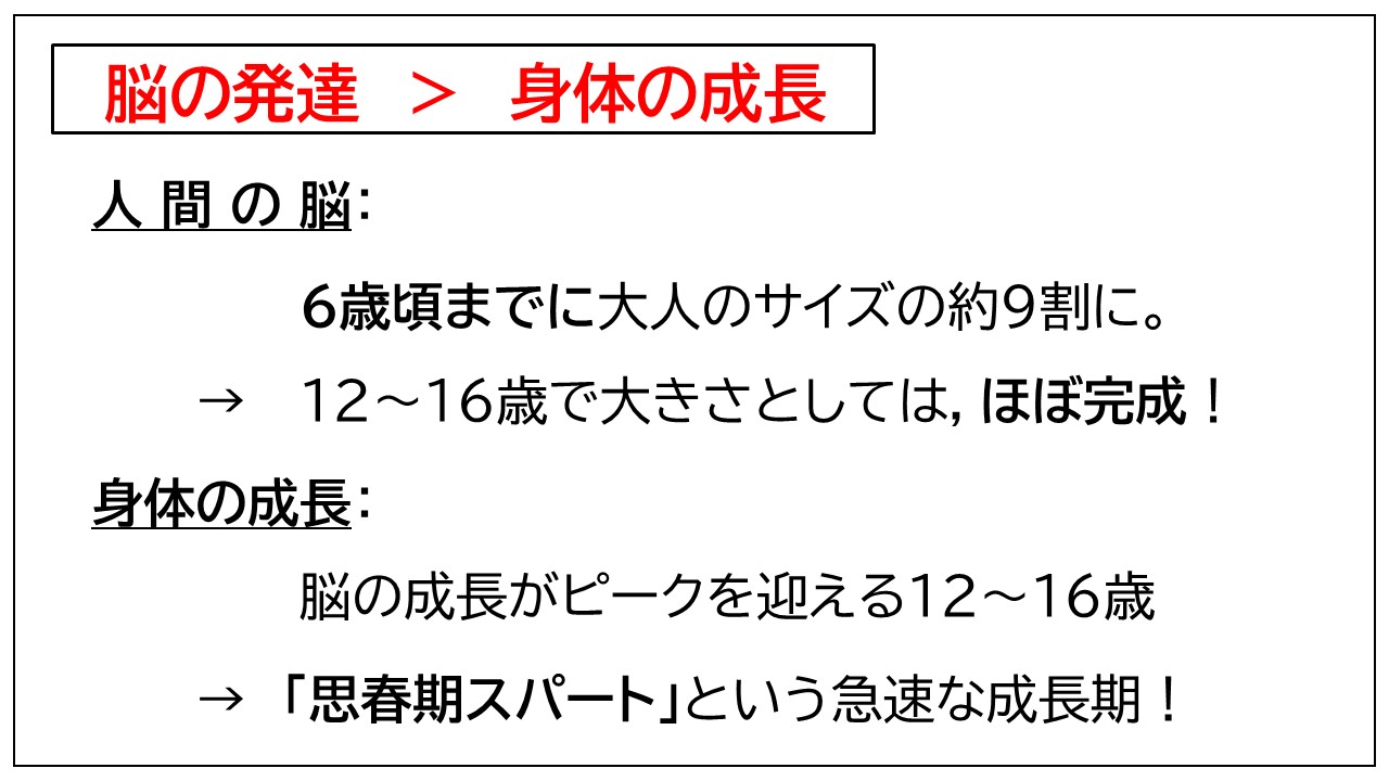 単に身体が大人に近づくだけの時期ではなく,脳の成熟にともない,身体的にも精神的にも不安定になる中で,複雑な社会を生き抜くために不可欠な「社会性」や「適応力」を身につけるための最も重要な学びの時期。